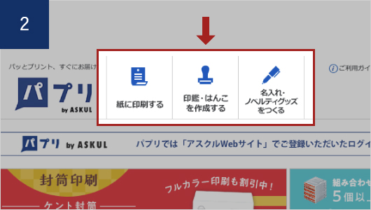 アスクルトップページからログイン後、右上にある「パプリ」をクリックします。